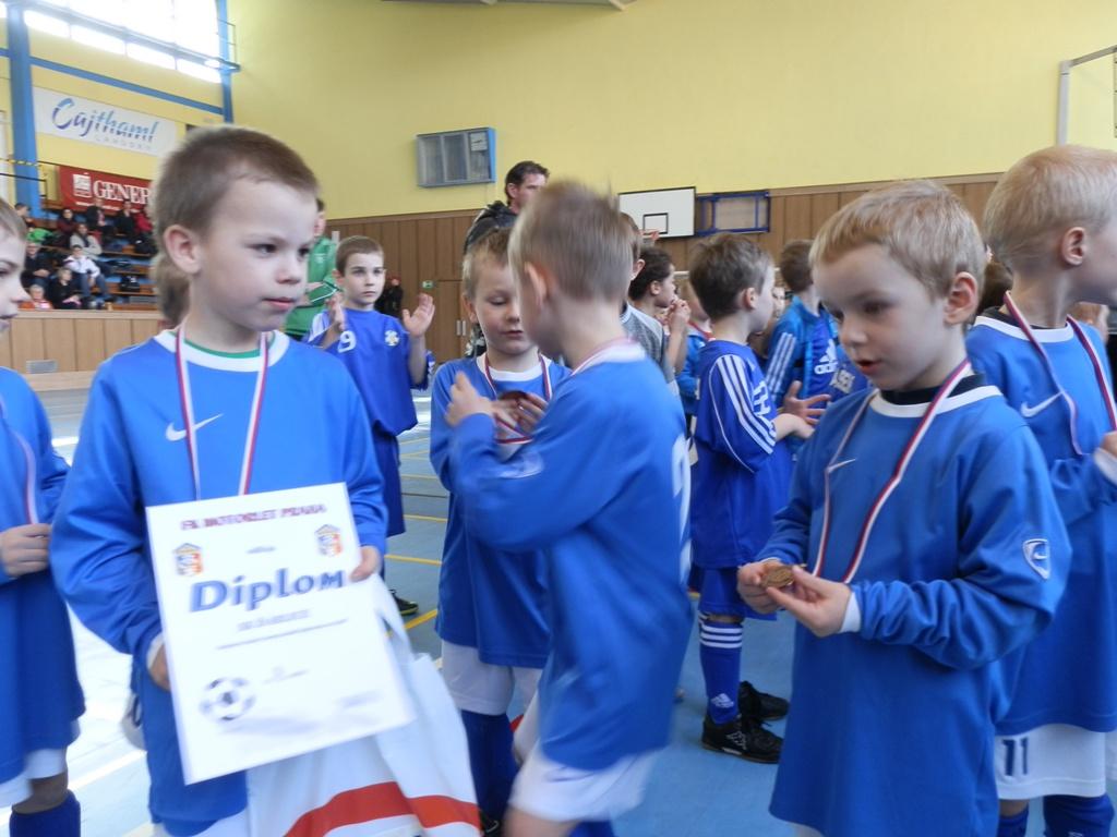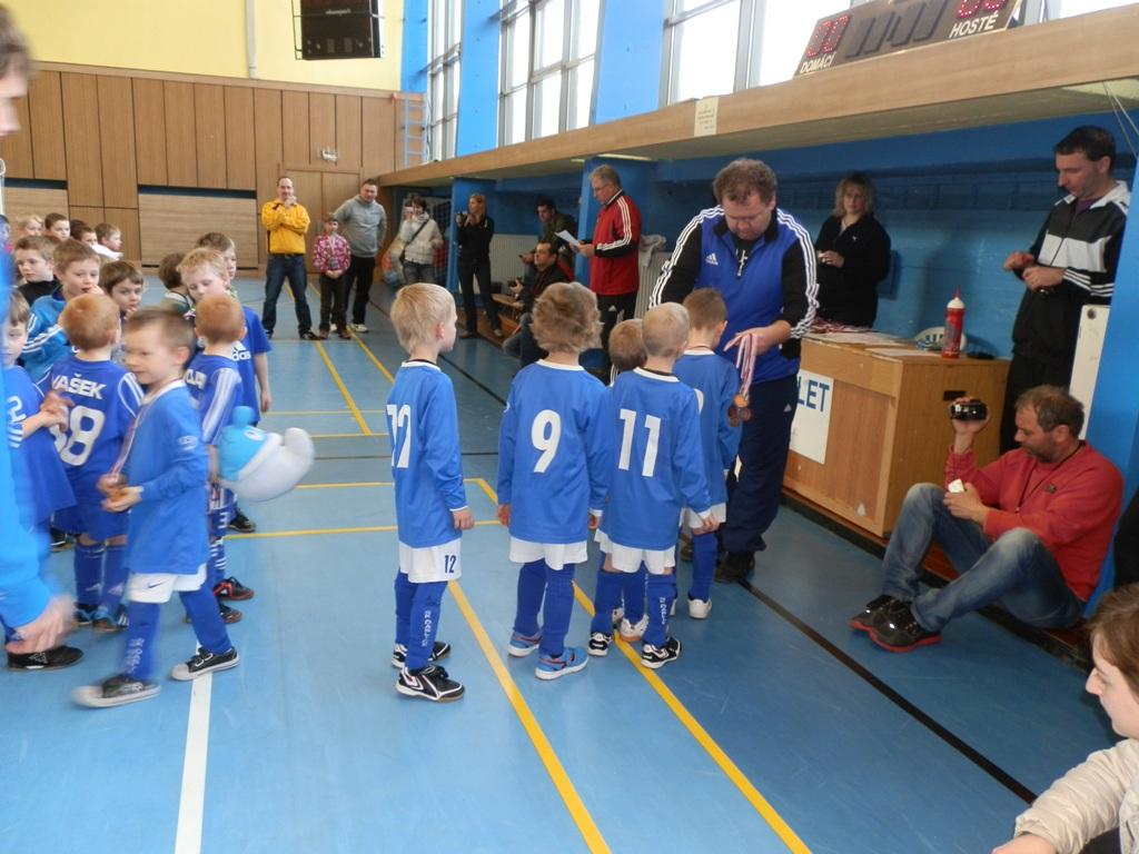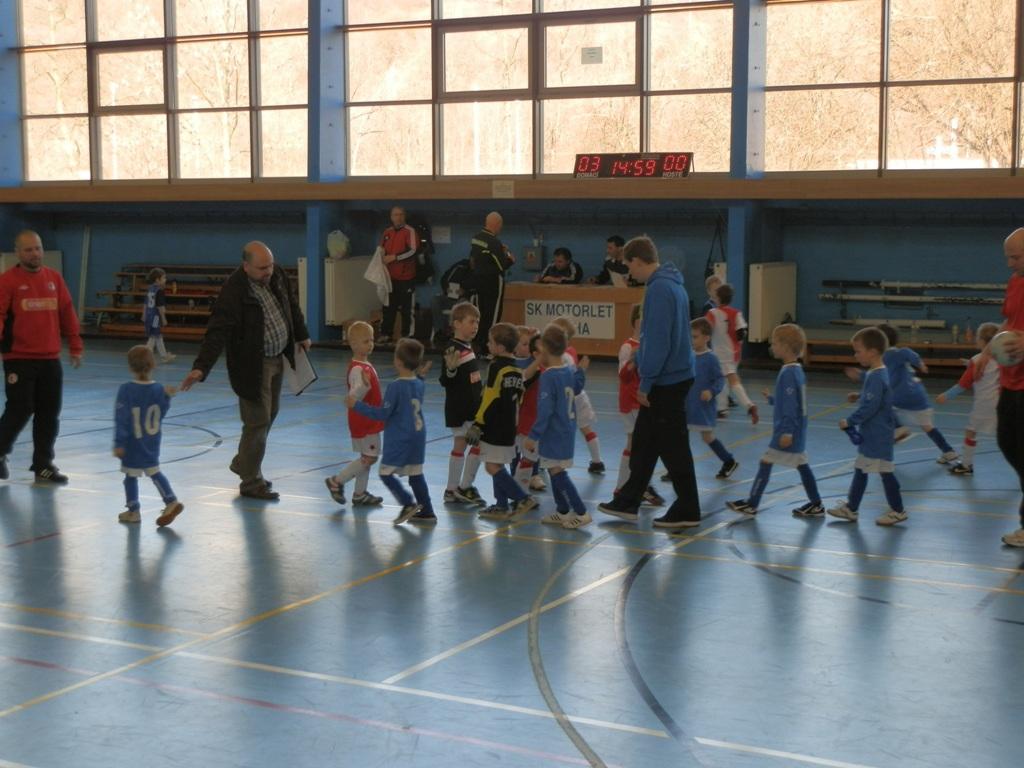 V neděli 17.3.2013 jsme se zúčastnili 1. řádného turnaje turnaje. Hrálo se v moderní hale v Radlicích a pořadatelem turnaje bylo družstvo Motorletu. Hrací doba byla 1x 15 minut , 4+1. Turnaj pro 8 mužstev ve dvou skupinách. My jsme byli nalosováni do skupiny A s tými Slavia"B"(celkový vítěz turnaje), Motorlet(2.místo) a SK Střešovice. Všechny tyto zápasy jsme přes obrovskou snahu a nasazení prohráli, ale zároveň musím uznat, že jsme všem soupeřům byli naprosto rovnocenými protivníky a ve většině případů jsme prohráli těsně o jednu branku. V další části turnaje o umístění jsme se utkali s tými Benešova a Bohemians 1905 . Oba tyto zápasy jsme remizovali, přestože zejména ve druhém zápase jsme byli lepším týmem. Celkově jsme obsadili "pěkné" osmé místo. Naše hra se v průběhu celého turnaje zlepšovala a na to, že pro většinu kluků to byl první turnaj a pro některé i první zápas vůbec, tak hráli velmi dobře. Barvy SK Ďáblice hájili: Tadeáš Sova, Dominik Sova, Dan Groh, Kubík Vlček, Filip Valášek, Filip Fibiger, Vojta Vlašánek, Jindra Vaňous, Jan Husák , David Korbler a Tadeáš Shíbal. Všichni kluci zaslouží obrovskou pochvalu, kterou zaslouží i rodiče, kteří vytvořili v průběhu turnaje skvělou atmosféru a kluky podporovali a hnali k lepším výsledkům.